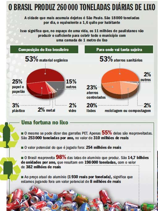 Tomando como exemplo o infográfico podemos ter noção de que cedo ou tarde, precisaremos dar um destino e uma reutilização adequada para o lixo. A princípio precisamos entender a palavra “lixo” não mais como uma expressão pejorativa, e sim como um mecanismo de mudança no presente que repercutirá positivamente no futuro.